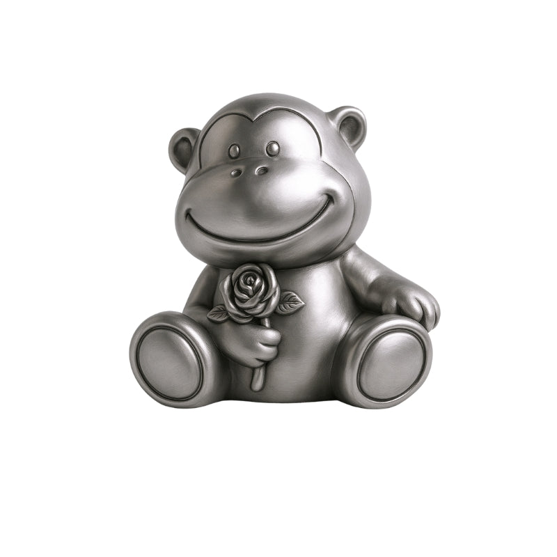 Introducing the Pewter Plated Monkey Money Box, a delightful blend of style and fun designed to brighten any childs room. This charming money box is perfect for encouraging savings while adding a playful and sophisticated touch to any space.