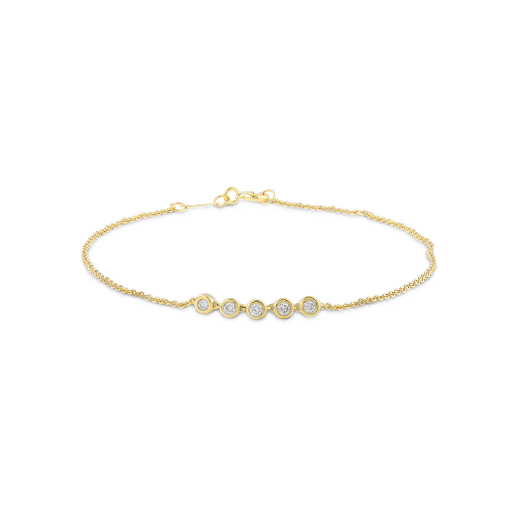 Simply irresistible, this stunning Yellow gold diamond Bracelet is made up of 5 diamonds, a total diamond weight of 0.15 carats to form an elegant bracelet.