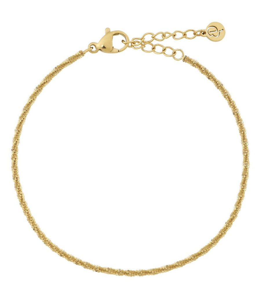 Tinsel Thin is an especially thin and elegant chain with a sparkling effect. The many small, metal loops are delicately interlinked to form a refined bracelet, seen here in shiny 14K gold plating. Wear Tinsel with other bracelets and chains for a personalised look.