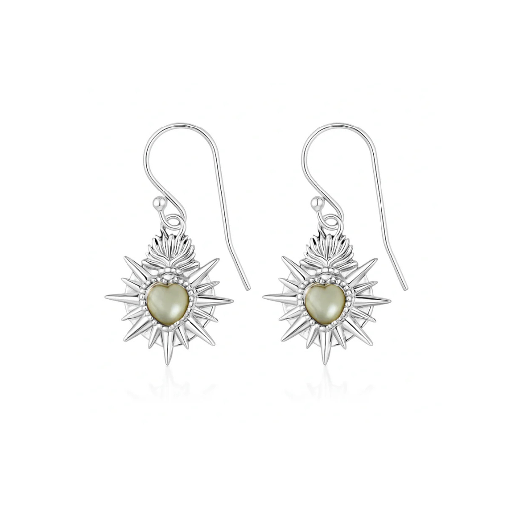 The La Stèle Mother of Pearl Heart Earrings capture soft elegance with a modern twist. Crafted in sterling silver, each earring features a petite heart of luminous mother of pearl. The sleek hook design offers effortless comfort and timeless charm — a simple piece that adds a gentle glow to any look, day or night.