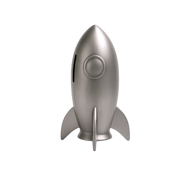 Blast off into savings with our Pewter-Plated Rocket Money Box. This stylish and whimsical money box combines a modern look with a design, making it a charming addition to any room.