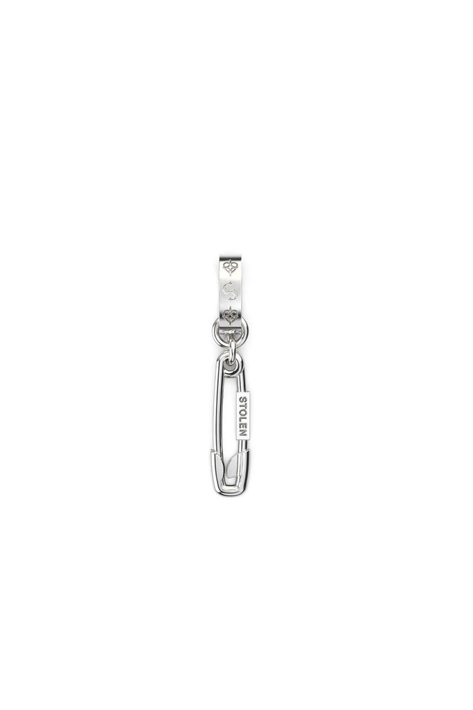 The Safety Pin Charm by Stolen Girlfriends Club is crafted from sterling silver and features a branded bar plate with the brand’s logo.