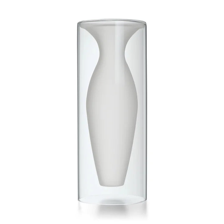 The vase Esmeralda from Philippi is one thing above all: amazing. It attracts all eyes and is a unique design object. The special thing about the vase is that it seems to float in a glass container - this gives it an extraordinary lightness. This amazing effect is further enhanced by the contrast of clear and matt glass.