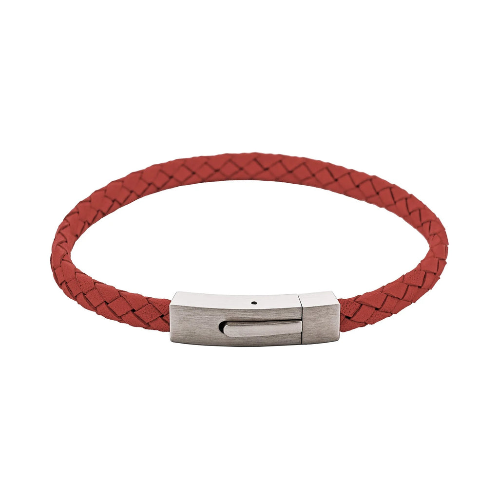 Cudworth - Braided Suede & Steel Calabria Bracelet, 21.5cm x 6mm, Flame